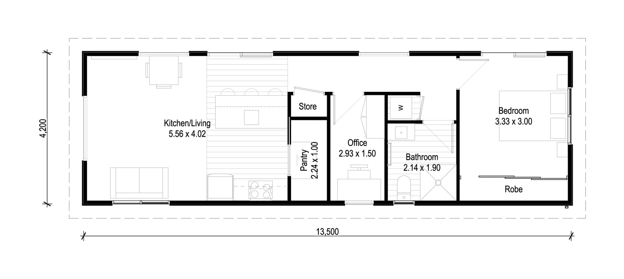 Our range of premium 1 bedroom homes delivers space, style, and functionality all wrapped into one smart package. With ample windows and doors, it’s bright, airy, and spacious. Inside, enjoy a convenient office, a walk-through butler’s pantry, loads of storage, and craftsmanship dedicated to exceeding your expectations in portable cosy homes.