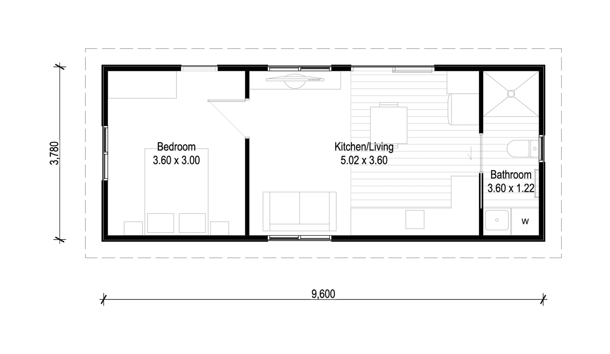 - Pre-set layout with open-plan living, kitchen and bathroom